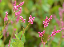 染物にも使われてきた豊かな色彩のアイやベニバナが咲き、鮮やかな花々と水音に彩られた空間。