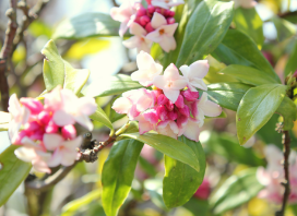 ジンチョウゲやヤブランなどの薬効植物が並ぶ、効能を知り心身を整える縁側のような空間。