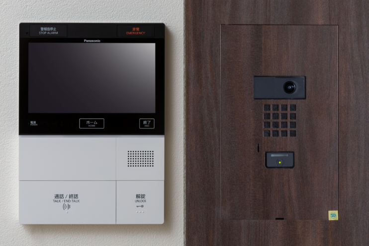 玄関前にいる来訪者を、音声に加え住戸内のカラーモニターより映像でも確認できるカメラ付インターホンを採用しています。
